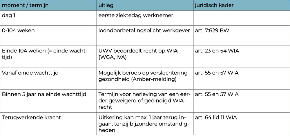 Tijdlijn ziekte en WIA